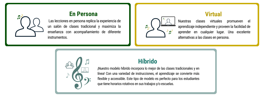 Nuestras clases – sin importar su formato – contienen un componente en línea que ayuda a masterizar y consolidar habilidades musicales a medida que los estudiantes aprenden.